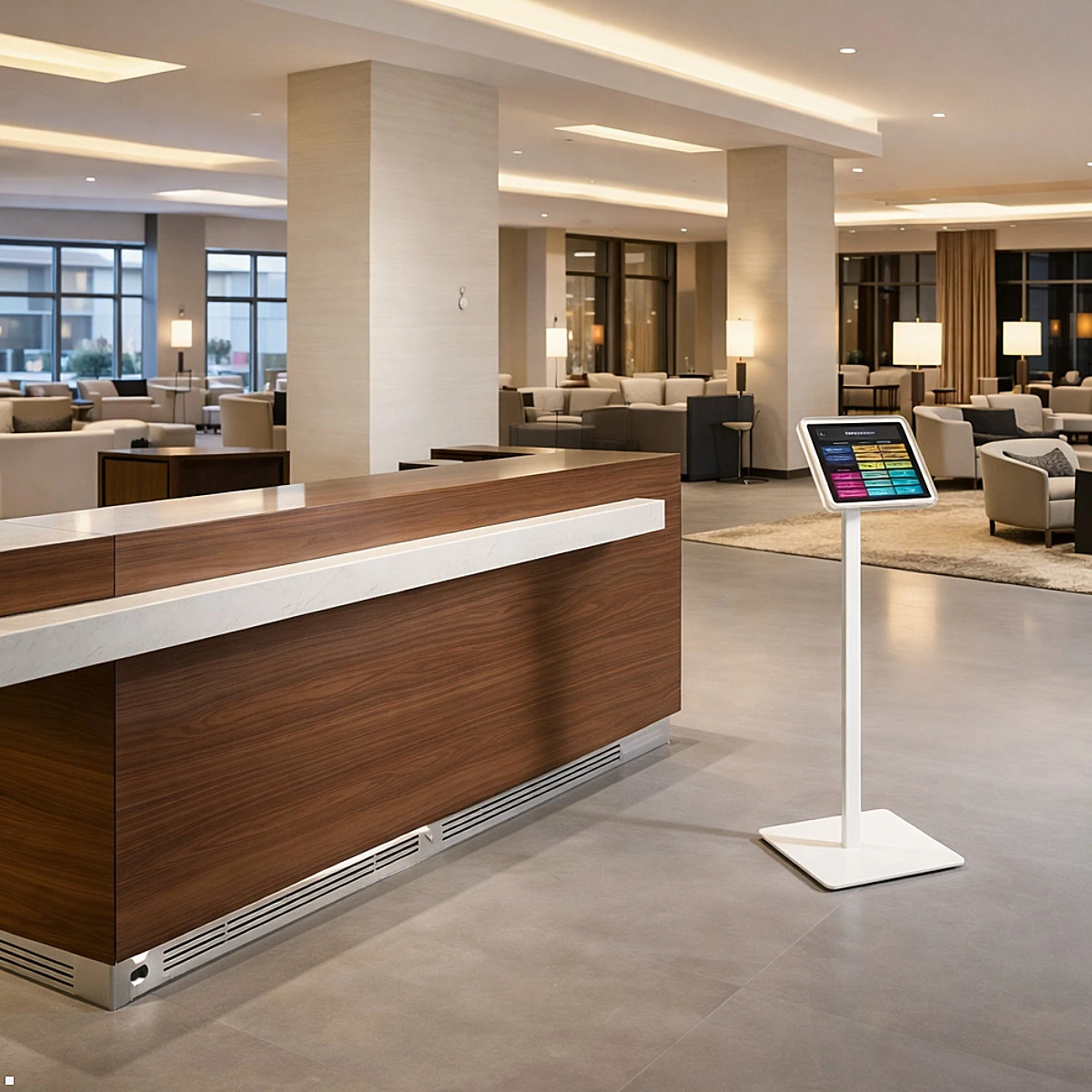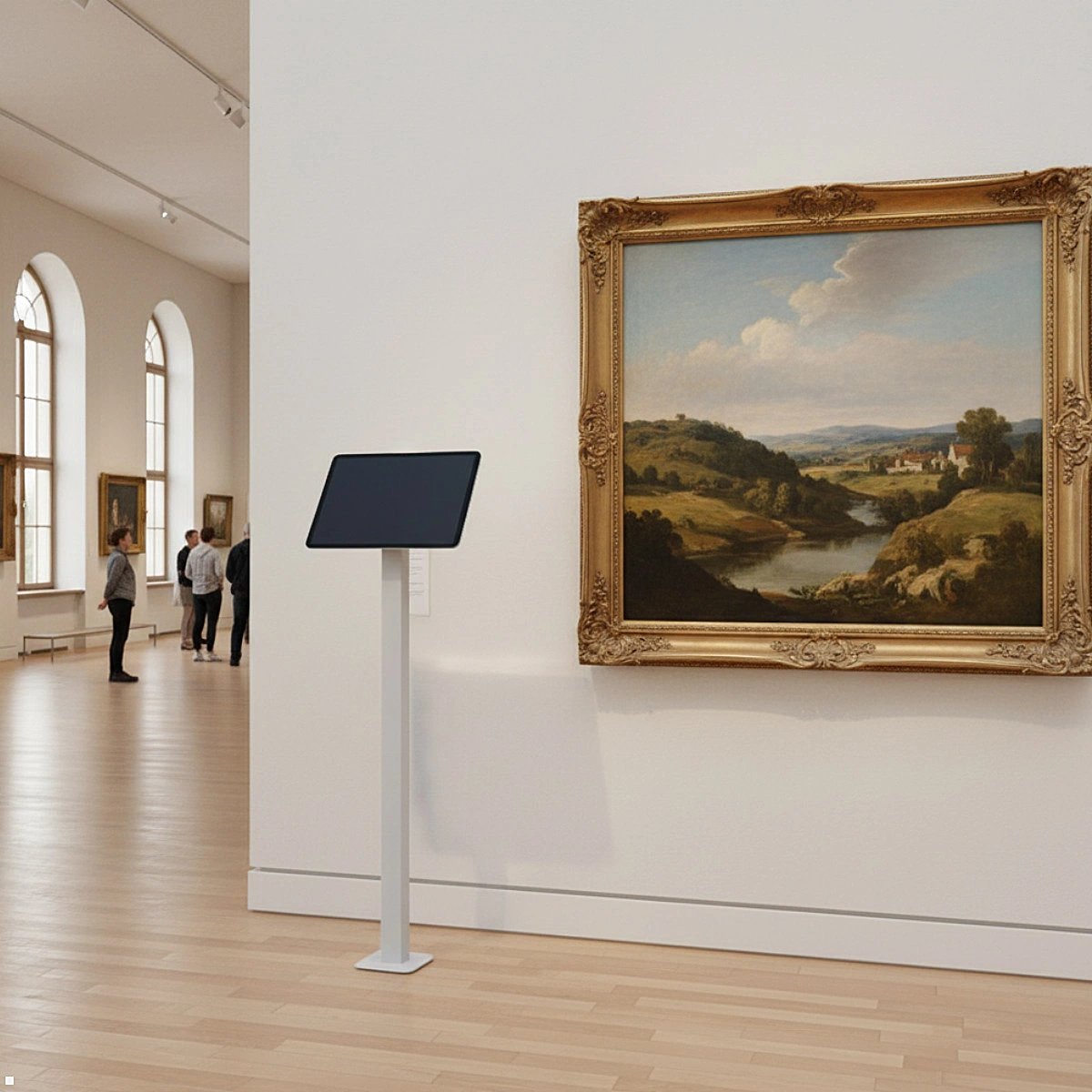 Wenn ein Tablet als Self-Service-Terminal, Umfrage-Station oder Informationsdisplay eingesetzt wird, sind Bodenständer (TBS002, TBS003, TBS009, TBS010, TBS012, TBS013, TBS019) eine besonders wirkungsvolle Lösung. Sie positionieren das Gerät frei im Raum und sorgen für maximale Sichtbarkeit. In Kombination mit einem robusten Schutzgehäuse entsteht eine stabile, langlebige Installation, die auch hoher Frequentierung standhält.
