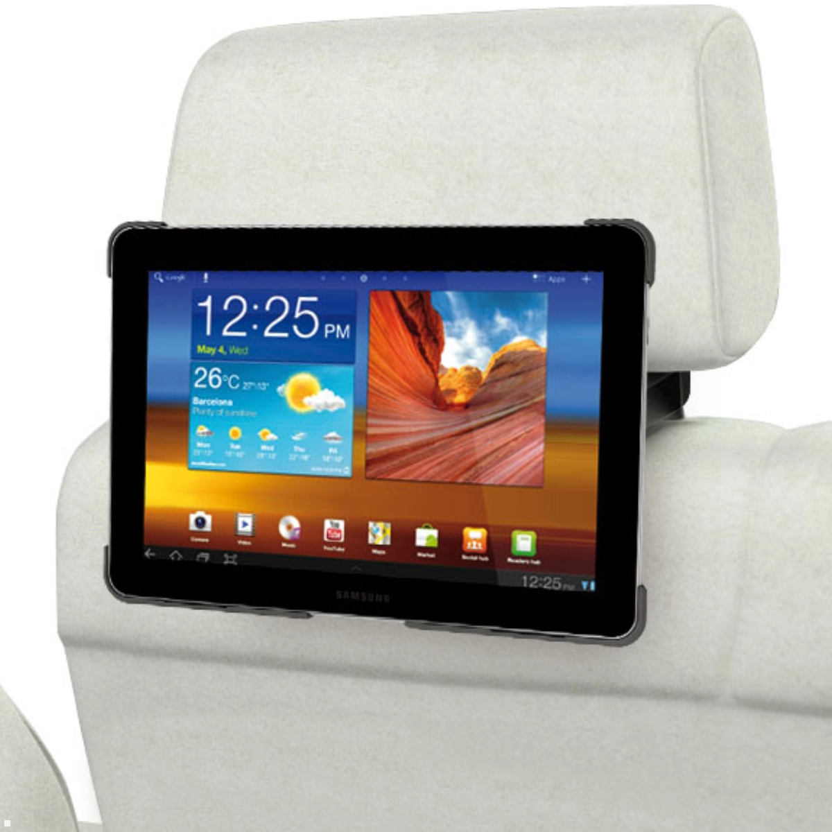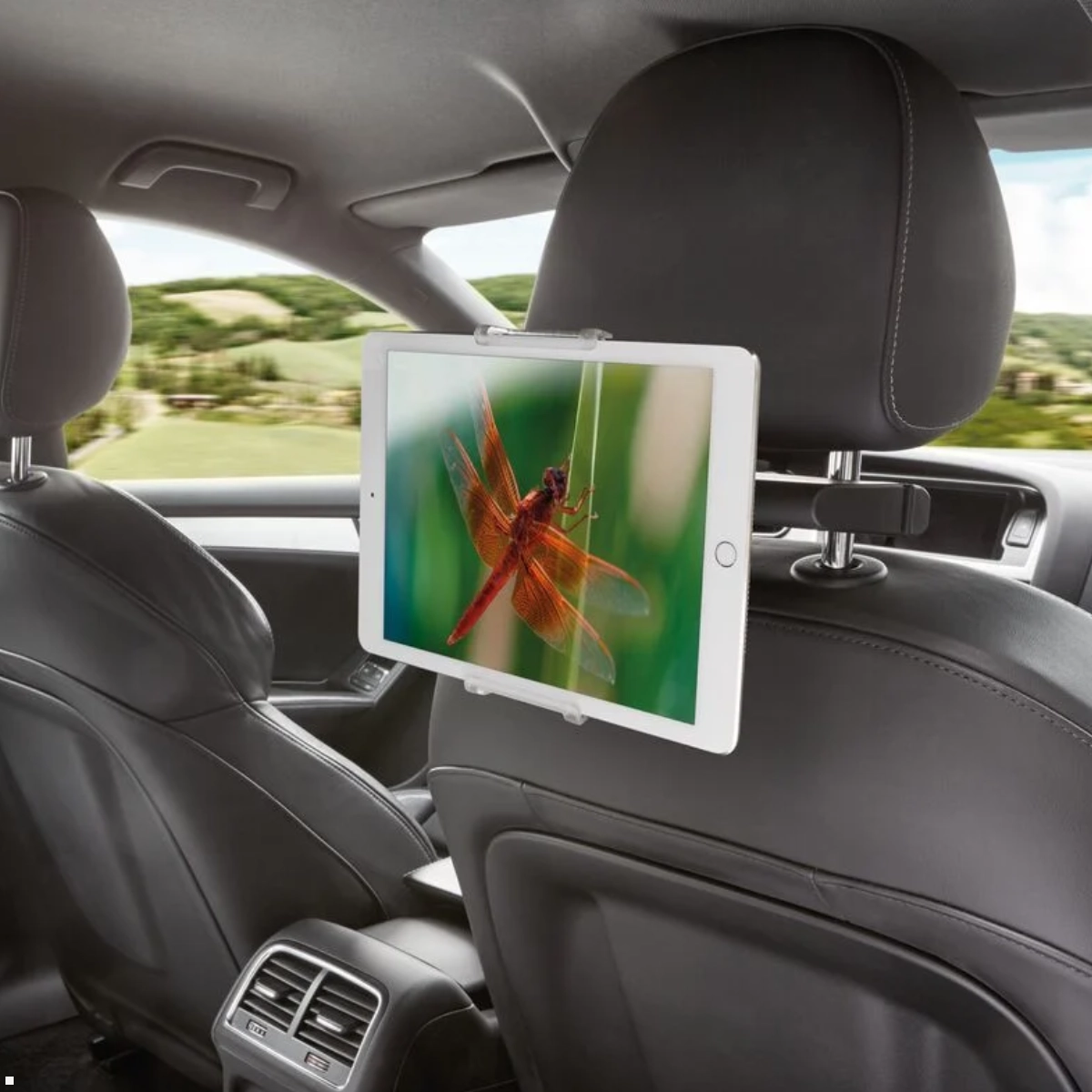 Diese Montageart eignet sich perfekt für Kinder oder Mitfahrer auf langen Fahrten. Das Tablet befindet sich auf Augenhöhe und behindert nicht die Sicht des Fahrers.